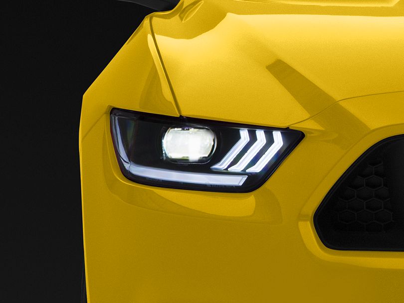 Intimidating Styling. Transform the appearance of your Mustang's front end by installing a set of Raxiom Projector Headlights. These Projector Style Headlights have an intimidating design that works well with the lines of your S550 Mustang to produce a sleeker appearance. These lights not only look great, but will also help to enhance visibility when compared to stock.